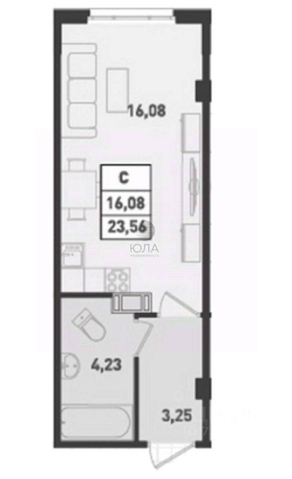 Продаётся студия общей площадью 23,56 кв.м на 9ом этаже.