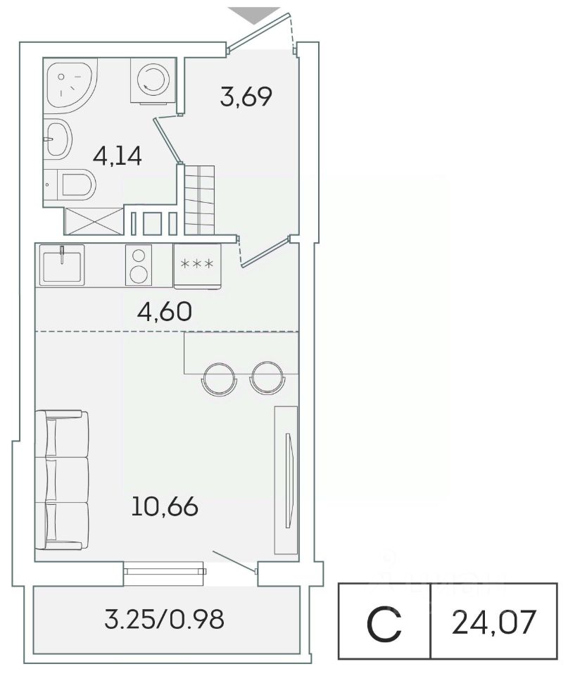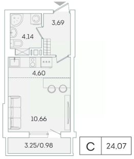 В продаже от застройщика студия 23.1 кв. м с черновой отделкой и практичной планировкой для удобной организации пространства. Корпус сдан