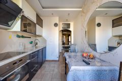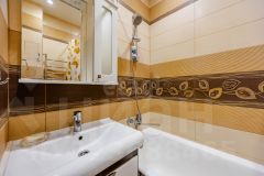 Элитный евроремонт выполнен с использованием высококачественных материалов: в комнатах — теплый паркет, на кухне, в коридоре, санузле и лоджии — стильная керамическая плитка с подогревом пола, а для дополнительного комфорта установлен кондиционер. Вся мебель и техника остаются новым владельцам — вам остается только заехать и наслаждаться жизнью.
