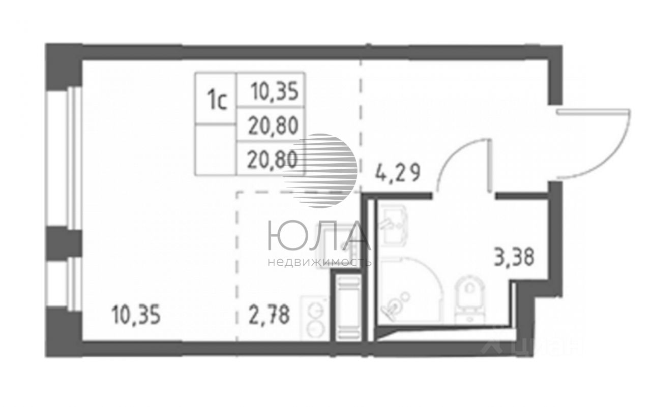 Продается светлая и уютная студия площадью 20.8 кв. м на втором этаже 12-этажного монолитно-кирпичного дома. Окна выходят во двор.