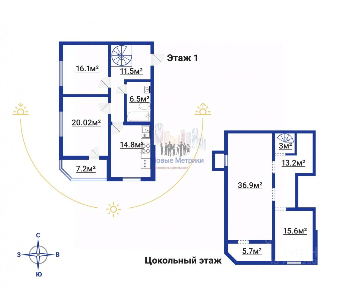 - Настоящая изюминка — полноценный цокольный этаж, представляющий собой 52 м² свободного пространства с потолками 3 метра. Здесь вы можете реализовать свои идеи.
