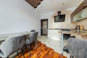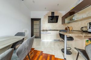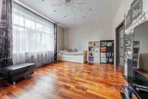 - На первом этаже квартиры расположены уютная гостиная площадью 20 м² и спальня в 16 м², а также совместный санузел.