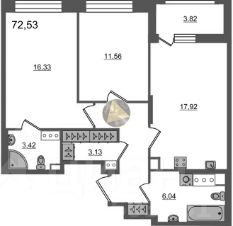 Квартира находится на 11/17 этаже. Общая площадь квартиры 72.53 м2.