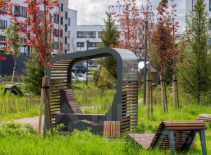 1. На территории комплекса находится протяженный пешеходный променад, парк с площадками для занятий различными видами спорта, детские площадки, панорамные качели с видом на Неву.