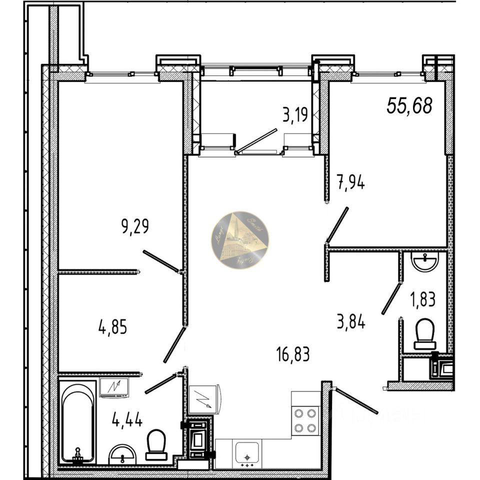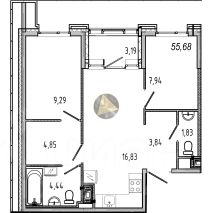 Общая площадь квартиры 55.68 м2.