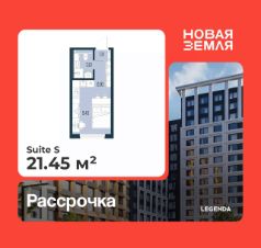 Продается 1-комн. квартира-студия с предчистовой отделкой в ЖК "Новая Земля" на 6 этаже. Общая площадь: 21.45 кв.м., площадь гостиной 16.33 кв.м., из которых 6.9 кв.м. выделено под кухонную зону. Все окна выходят на одну сторону. В квартире один совмещенный санузел. Высота потолков 2.85 м.