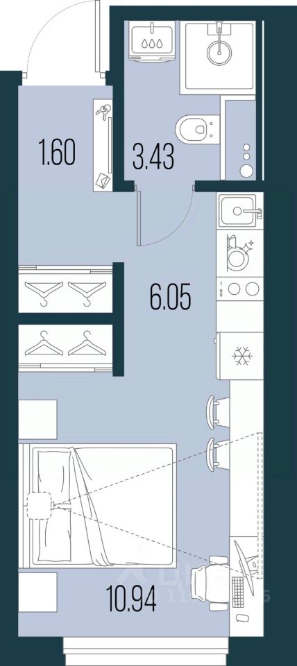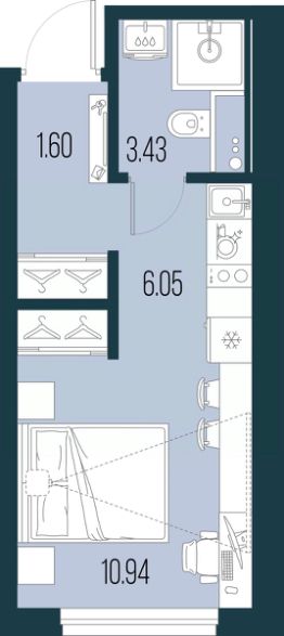 Продается однокомнатная квартира-студия с предчистовой отделкой в ЖК "Новая Земля" на 10 этаже. Общая площадь: 22.02 кв.м. Высота потолков 2.85 м.