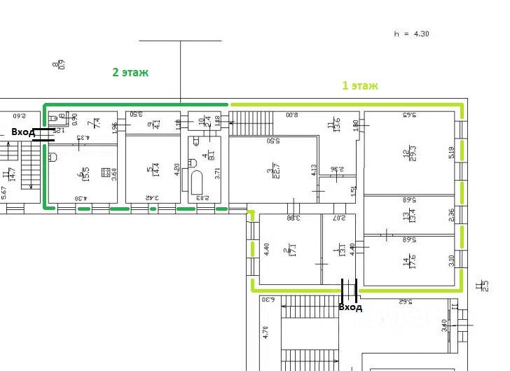 Помещение двустороннее. Правильной удобно функциональной планировки. ДВА ВХОДА. Расположено на 1 и 2 этажах, что позволяет при желании сделать два раздельных помещения. Высокие потолки h=4,3м. Есть возможность сделать проект для шести студий (доходный бизнес для сдачи в аренду). Помещение идеально подходит для любых целей: под офис, магазин и другое. Можно просто жить в данной квартире. Красивая просторная парадная.