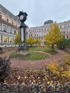 • Уникальная деталь двора — метеорологический прибор с часами и барометром, а у правого корпуса установлен памятник героям фильма Собачье сердце.