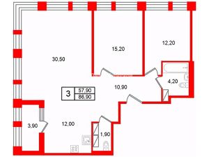 • Общая площадь: 87 кв. м (с балконом - 91 кв. м)