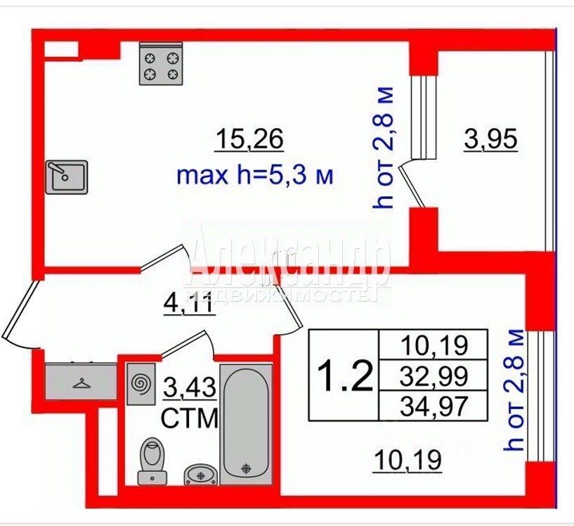 1702391 Продается просторная 1к.кв. с большой кухней-гостинной 15,26 кв.м. и комнатой 10,19кв.м.