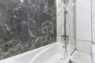 2 санузла с теплым полом. Установлены датчики утечки воды. В одном из них полноценная ванна. На полу керамогранит и ламинат в комнатах.