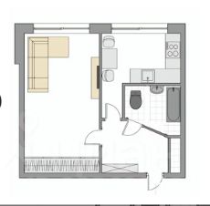 Общая площадь квартиры 29,3 кв.м: комната 16 кв.м., кухня 6,7 кв.м. Санузел совмещенный.