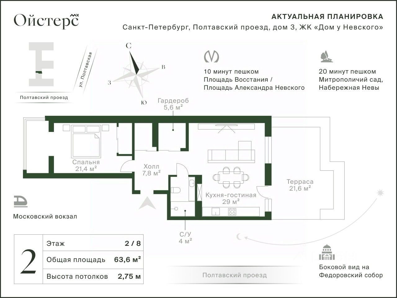 Квартира находится в "Доме у Невского" от RBI — одного из лучших застройщиков на рынке. Закрытая территория, профессиональная управляющая компания, малое количество квартир — здесь есть всё для приватной и размеренной жизни. Удобное расположение позволяет быстро добираться до центра и ключевых точек города.