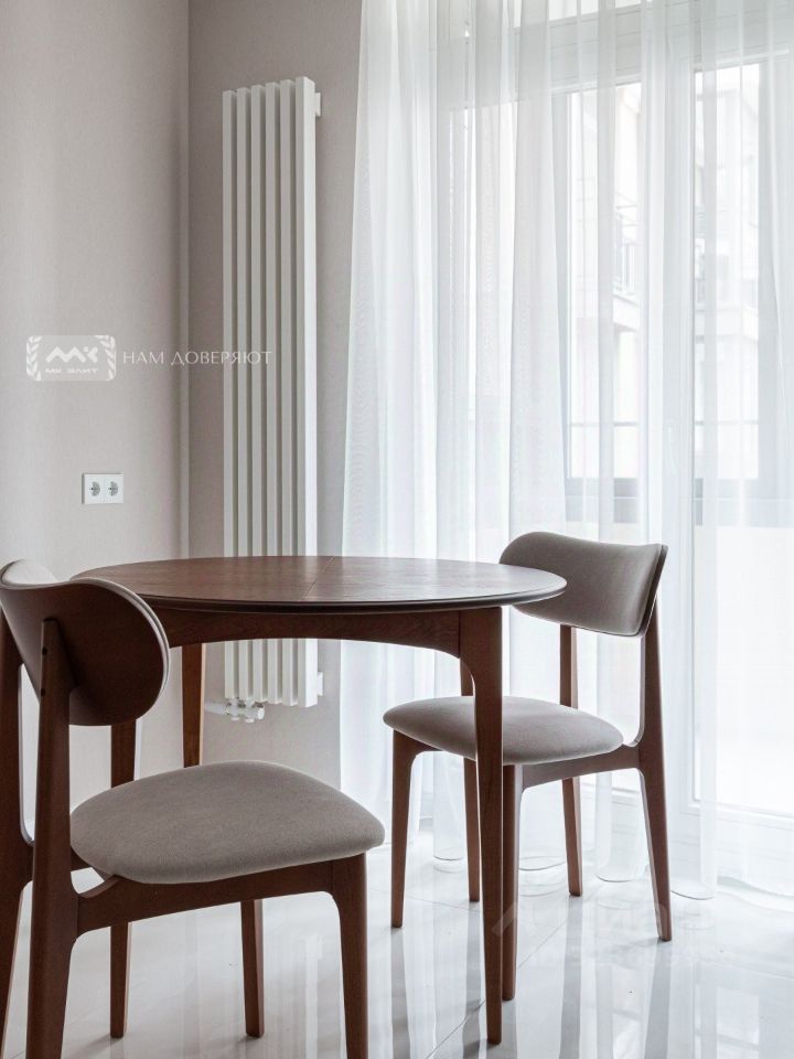 В квартире выполнен современный и лаконичный ремонт. Пол уложен испанским керамогранитом, стены оклеены обоями из последних коллекций. Кухня и техника модных европейских брендов. Для вашего удобства и безопасности в квартире установлены: подогрев полов, водонагреватель, кондиционер, фильтры очистки воды.