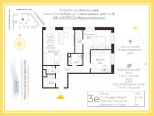 Арт. 124507050 Предлагается к продаже евротрехкомнатная квартира от компании LEGENDA в самом центре Петербурга, на правом берегу Невы в ЖК Бизнес класса " Малоохтинский, 68."