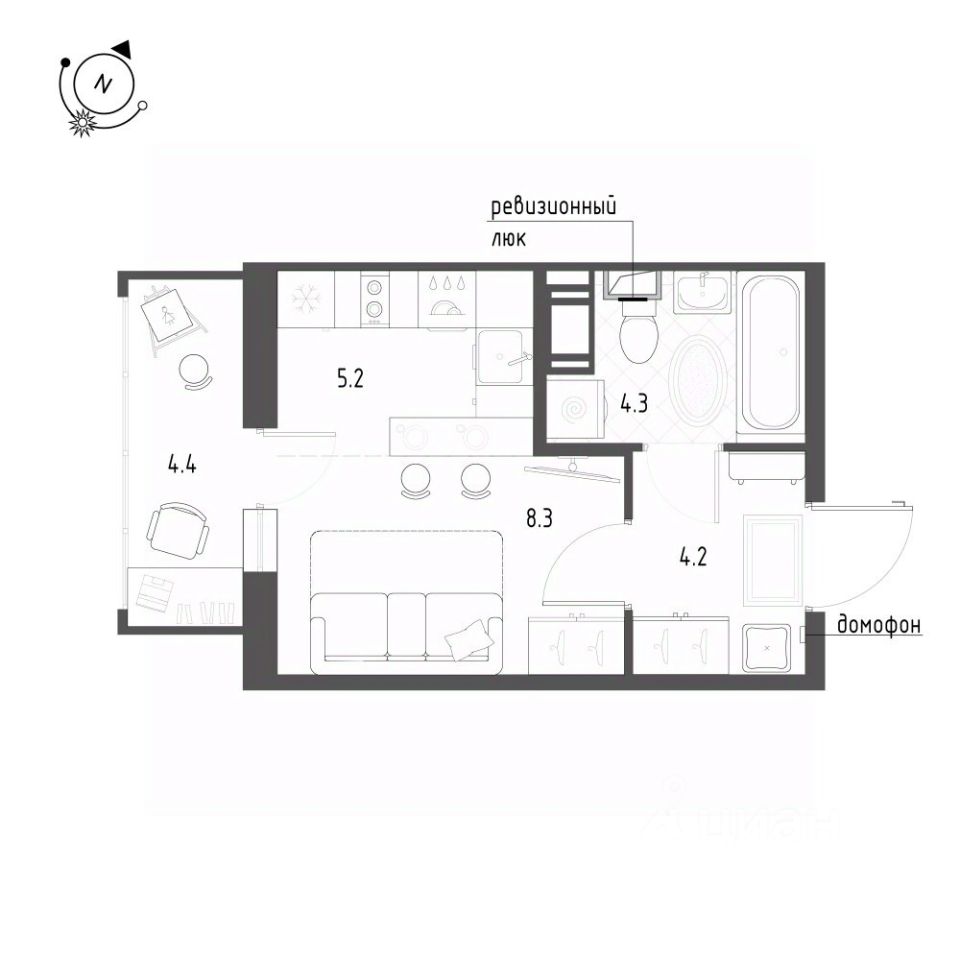 341883 Продается уютная и светлая студия-квартира в современном жилом комплексе ЖК Монография площадью 23.1 м2.