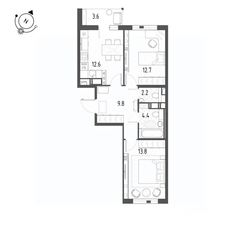 Комнаты 13,8м2+12,7 м2