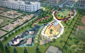 • Места притяжения: фонтан "Бионика", спортивный кластер со скейт-парком, фотозоны с арт-объектами