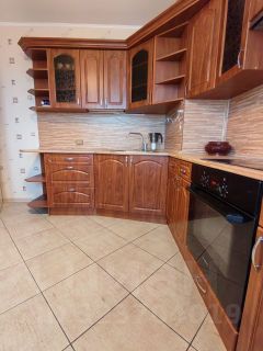 В квартире сделан ремонт в классическом стиле. В комнатах светло-бежевые обои, пол ламинат, цвет - светлого дуба, потолки белые натяжные. В прихожей на полу керамическая плитка шоколадного цвета, двери темно-коричневый цвет. Санузел - на стенах и полу светло- бежевая плитка. в туалете пол- темная плитка. Кухня - на полу светлая плитка, на стенах светло-бежевые обои.