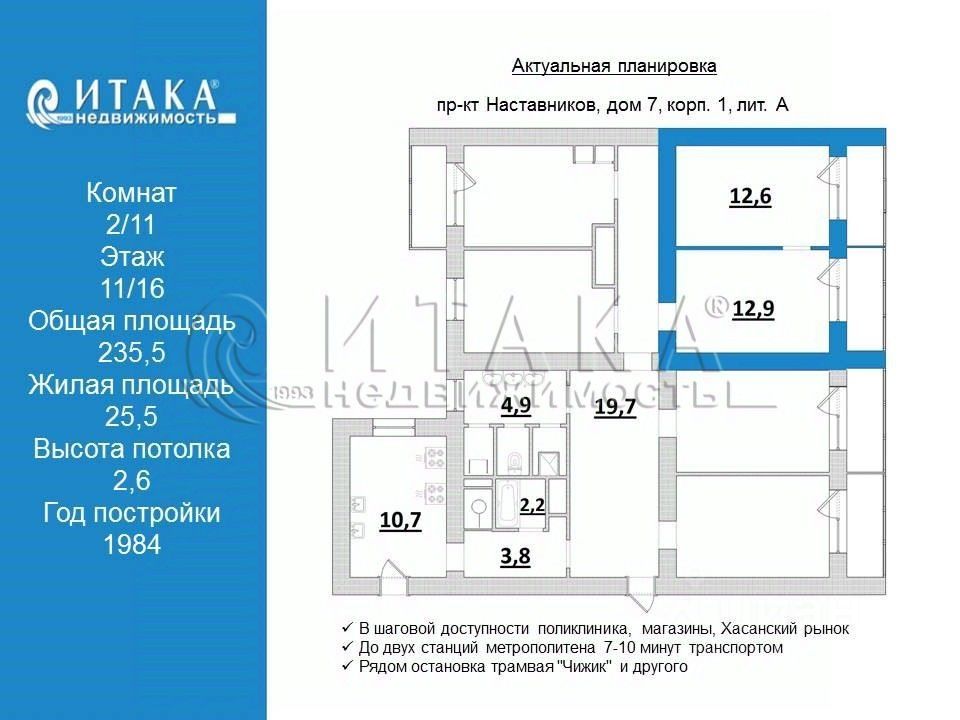 Площадь комнат
