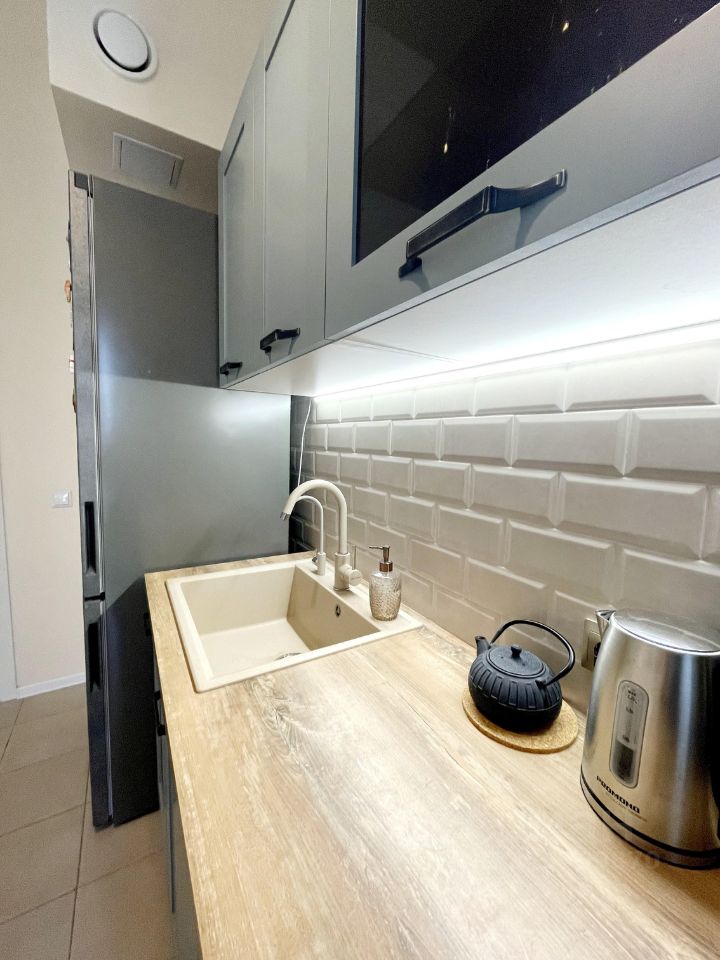 Квартира с продуманной планировкой, есть все необходимое для комфортного проживания, продается с мебелью, встроенной бытовой техникой и кондиционером.