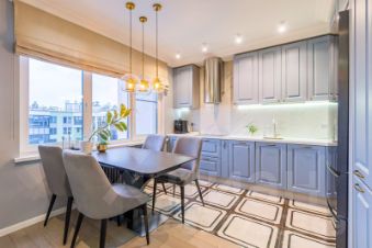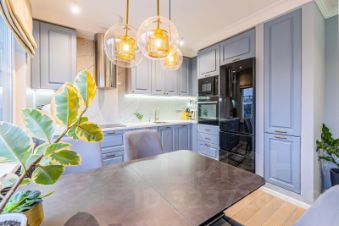 Кухня Мария оснащена техникой Neff и Bosch, продумана эргономичная система освещения и хранения. В санузлах сантехника Laufen и Ravak, итальянская плитка с запилом под 45, мебель на заказ, тёплые полы. В квартире выполнена усиленная шумоизоляция и профессиональная электрика: около 1,5 км проводки и качественно собранный щит с автоматикой.