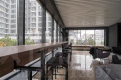 В одном из дворов расположена панорамная веранда iD Club для резидентов жилого комплекса. Это стильный павильон с панорамным остеклением, который открыт только для жителей квартала и их гостей. Здесь можно провести деловую встречу, выпить кофе после прогулки в парке, поработать.