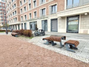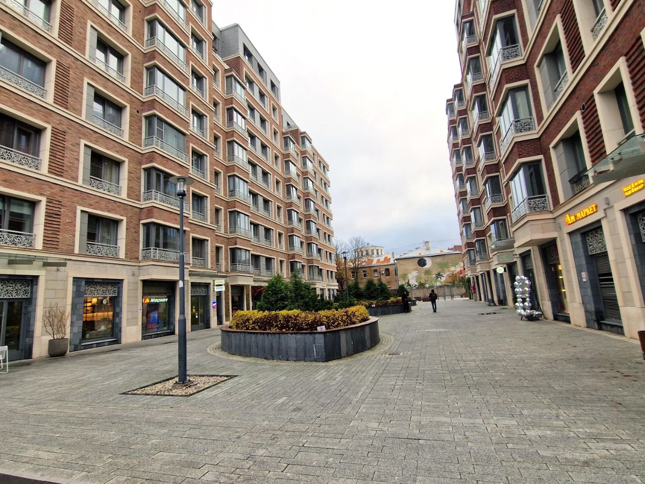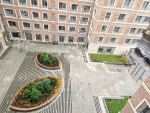Двор без машин, работает консьерж, круглосуточная охрана и видеонаблюдение. Территория закрытая, с ландшафтным озеленением, есть прогулочные зоны, детская и спортивная площадки.