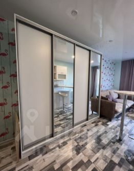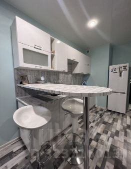 В квартире выполнен дизайнерский ремонт с использованием качественных материалов. Пространство студии организовано максимально функционально: есть зона отдыха и уютная кухня. Установлена современная техника и мебель, которая останется новым хозяевам, а именно: