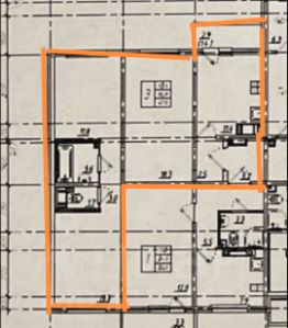 Общая площадь квартиры составляет 64,1 кв. м, из которых 43,3 кв. м.занимают жилые помещения, а кухня — просторные 17 кв. м.