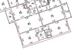 Общая площадь квартиры составляет 64,1 кв. м, из которых 43,3 кв. м. занимают жилые помещения, а кухня — 10,9 кв. м.