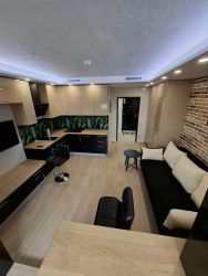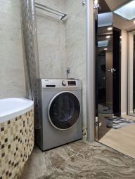 В квартире сделан очень качественный ремонт. Меняли остекление, использованы стройматериалы лучших производителей. Установлены счетчики на воду, электроэнергию, отопление, теплый пол. Бытовая техника: духовой шкаф Whirpool c функцией СВЧ, стиральная машина Haier, посудомоечная машина Ginzzu, варочная панель Lex. Сантехника HATRIA .