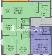 3 изолированные комнаты: 12.12, 13.14, 10.39 м2