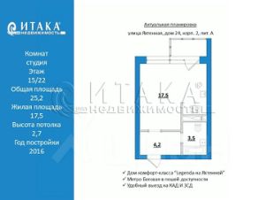 1-92422 Продается уютная,светлая квартира-студия в доме комфорт-класса 'Legenga на Яхтенной,24". Окна выходят в широкий двор. В студии продуманные планировочные решения- удобная кухонная зона с холодильником и плитой, просторное место для отдыха с раскладывающимся диваном, большой шкаф в прихожей для хранения одежды, удачное расположение стиральной машины в санузле. Ремонт выполнен для себя из качественных материалов. В парадной 6 лифтов, есть колясочная. Закрытая территория дома. Двор без машин. Круглосуточная охрана. Возможность вызвать мастера в квартиру в течении 15 минут. Несколько детских разновозрастных площадок. Зона отдыха для пожилых. Спортивные уличные тренажеры. В доме есть подземный паркинг. Рестораны, булочные, кафе, магазины, фитнес- все в пешей доступности. До метро Беговая 15 мин пешком, также рядом еще станция метро Старая деревня-10 мин на транспорте. Удобный выезд на КАД и ЗСД. Прямая продажа. В собственности более 8 лет. Один взрослый собственник. Документы готовы. Обременений на квартире нет. Никто не зарегистрирован.