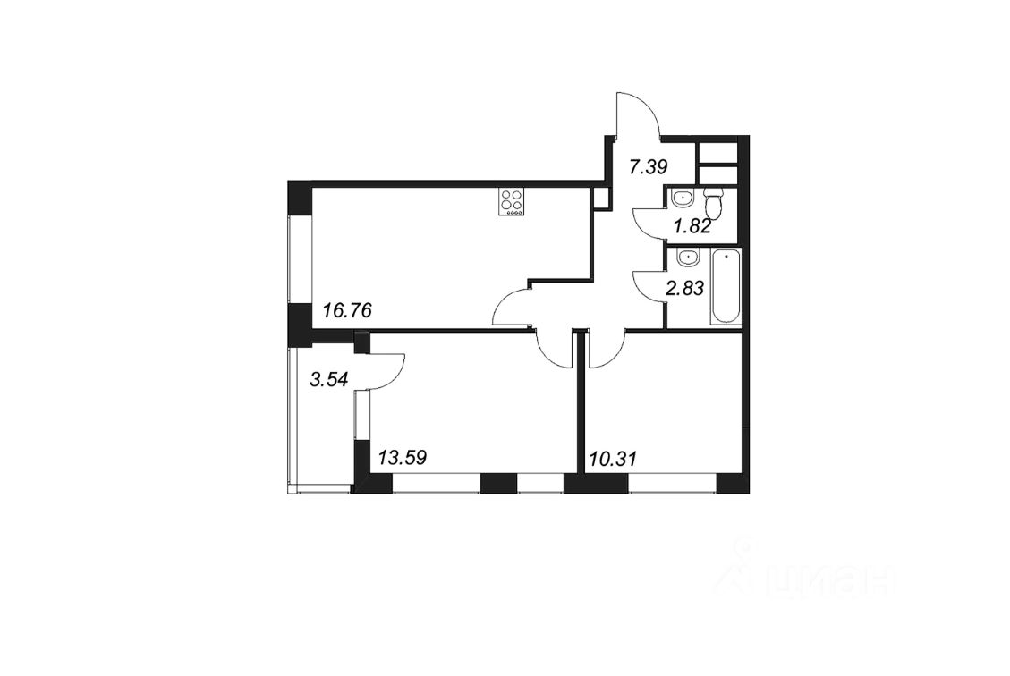 Продаётся просторная 2-комнатная квартира в современном доме, построенном в 2025 году. Общая площадь квартиры — 54,47 кв. м, жилая площадь — 23,9 кв. м, площадь кухни — 16,76 кв. м. Квартира расположена на 2 этаже 12-этажного монолитно-кирпичного здания. Высота потолков составляет 2,77 метра. Удобное транспортное сообщение: до ближайшего метро всего 4 минуты на автомобиле.
