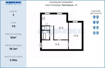 Высота потолков 3.35м, что добавляет воздуха.