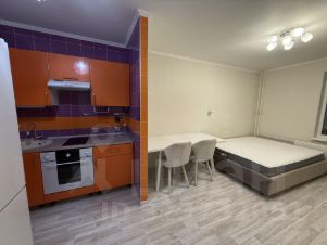 Продается студия с ремонтом, полностью мебелированная, со всей необходимой техникой. Все, что присутствует на фото (кроме кроссовок у двери) остается новому собственнику - стиральная и посудомоечная машины, холодильник, шкаф платяной на балконе и в комнате, шкаф-пенал, стол, стулья, вентилятор напольный, водонагреватель, новая кровать (askona) с подъемным механизмом, матрац (askona) с двумя степенями жесткости (использовался с чехлом, следов использования нет).