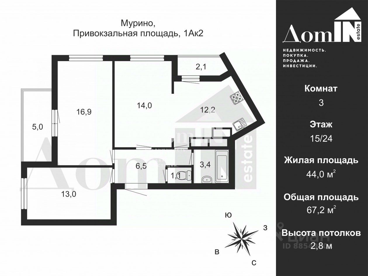 Арт. 125125307 Предлагаем просторную 3-комнатную квартиру в ЖК "Мечта" в ста метрах от метро "Девяткино".