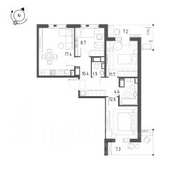 Уникальная планировка 3-комнатной квартиры на две стороны света, с большой кухней-гостиной, тремя спальнями и двумя просторными угловыми лоджиями отлично подойдёт для семьи с детьми. • Входной холл с местом для размещения гардеробной или системы хранения. • Три жилые комнаты спальни, правильная конфигурация которых позволит разместить мебель с учётом потребностей каждого члена семьи. Преимущество двух спален, удаленных от входа, выход на просторные угловые лоджии, на которых можно обустроить дополнительные места отдыха, работы или для занятия хобби. • Кухня-гостиная центр притяжения квартиры место для времяпровождения всей семьи и гостей. Пространство можно удобно разделить на зону готовки, обеденную и гостиную части. • В квартире два просторных санузла, один из которых совмещён с ванной. Площадь санузлов позволит разместить необходимую сантехнику, полноценную ванну, стиральную машину. • Ещё одно преимущество квартиры увеличенные окна, которые обеспечат максимум естественного света.