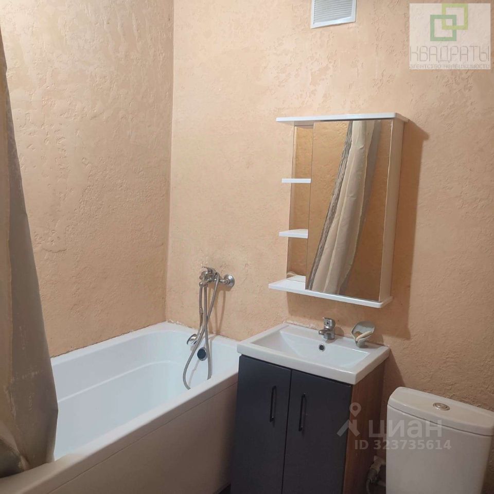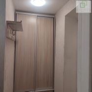Комната большая 18, 5 м, с балконом. Санузел совмещенный, с продольной ванной. В прихожей высокий шкаф для одежды.