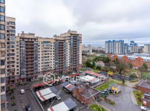 Квартира расположена на 10-м этаже — откуда открывается впечатляющий вид на Петербург и его зелёные окрестности.