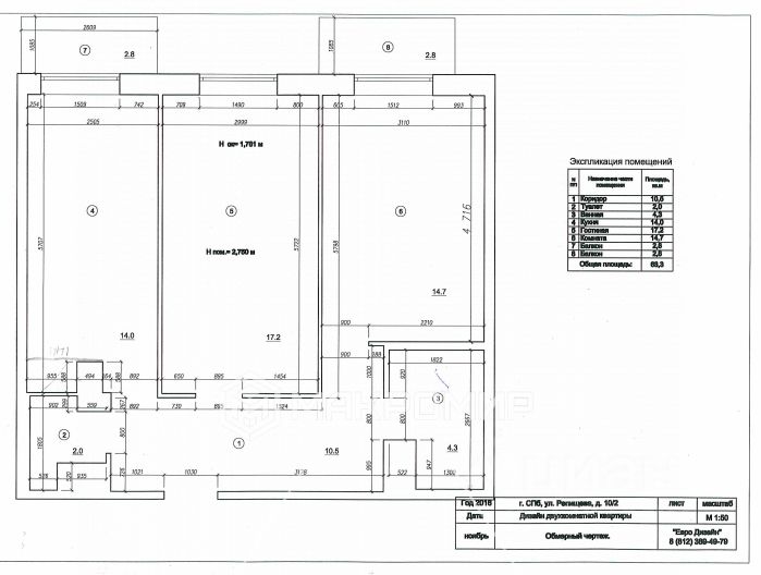 — Два балкона по 2,8 м² с выходом из кухни и спальни.
