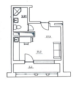 Площадь квартиры 21,2 м., из которых 17,3 жилая