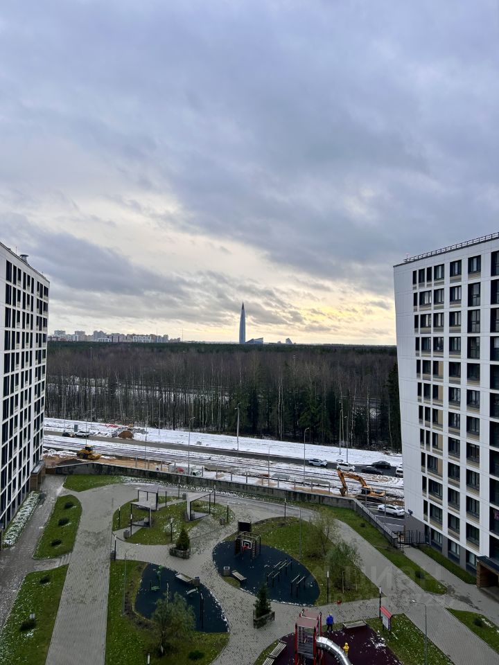 Прямой вид на лесопарк, в хорошую погоду видно Лахта Центр.