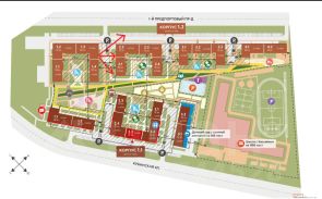 Территория ЖК закрытая. Без машин. Внутри большое пространство с променадом и площадками для спорта и отдыха.