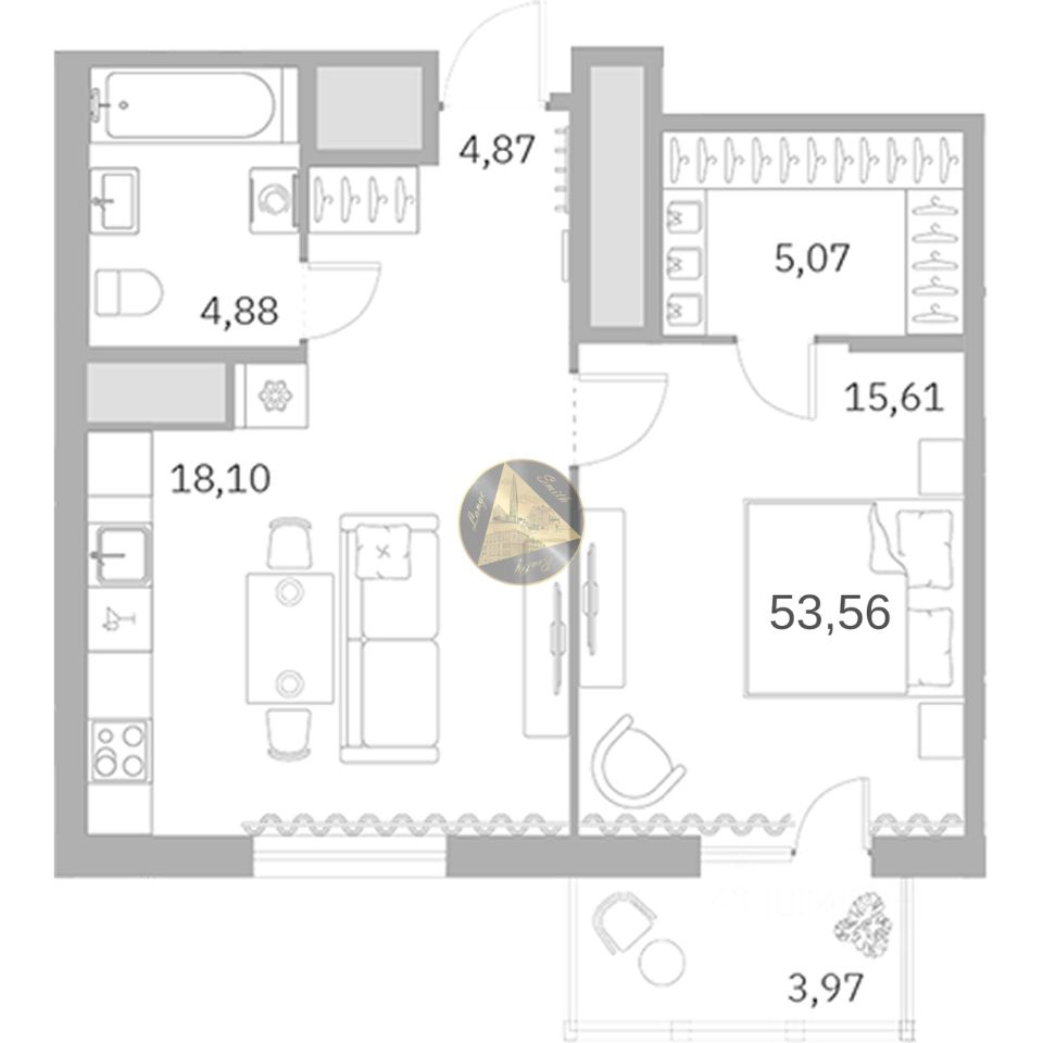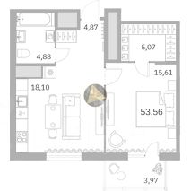 Светлая спальня 15.61 м2 с отдельной гардеробной 5.07 м2.