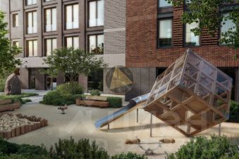 1. В зеленом дворе спроектирована детская игровая площадка и зона для занятий воркаутом, а рядом создана eco-friendly парковка для велосипедов.