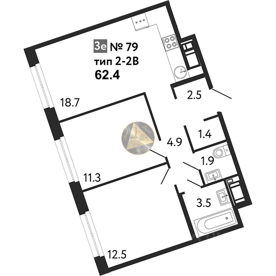 Квартира находится на 5/8 этаже. Общая площадь квартиры 62.4 м2.
