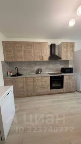 Встроенная кухня с техникой (посудомоечная машина, духовой шкаф, варочная панель, холодильник, микроволновка).